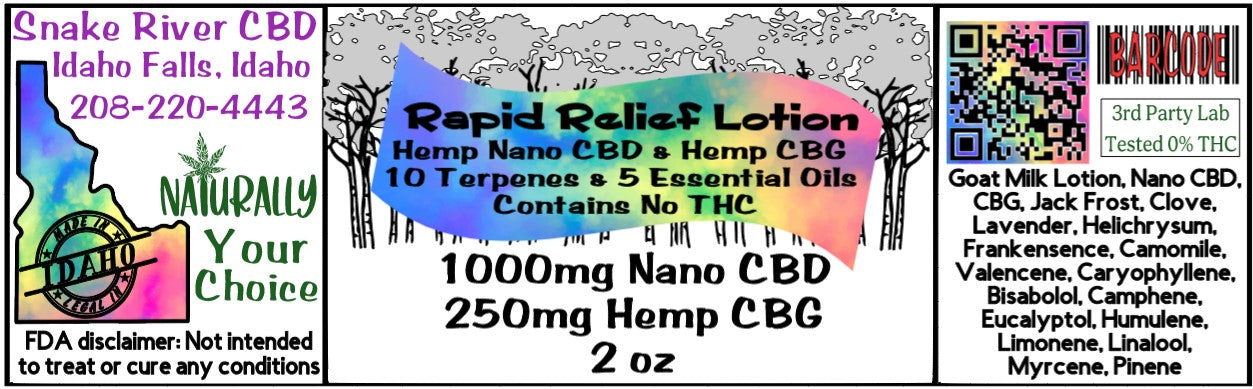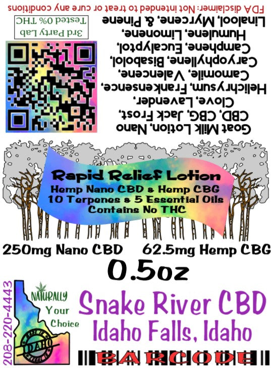 Our Rapid Relief contains CBD, CBG, 10 terpenes and 5 essential oils all combined in a Jack Frost Goat Milk Lotion for fast acting inflammation and discomfort relief with a nice earthy natural smell.